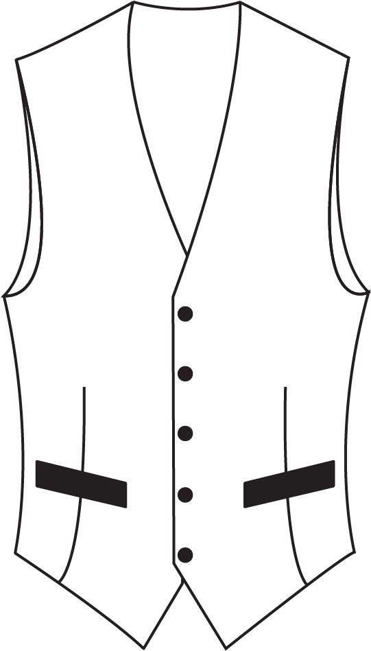 A sleek, timeless style defined by its curved horseshoe neckline and four-button front. The shape creates an elegant line that frames a formal shirt beautifully—making this vest the perfect partner for a tuxedo or dinner jacket. Among vest styles, the horseshoe neckline remains the most formal and refined.