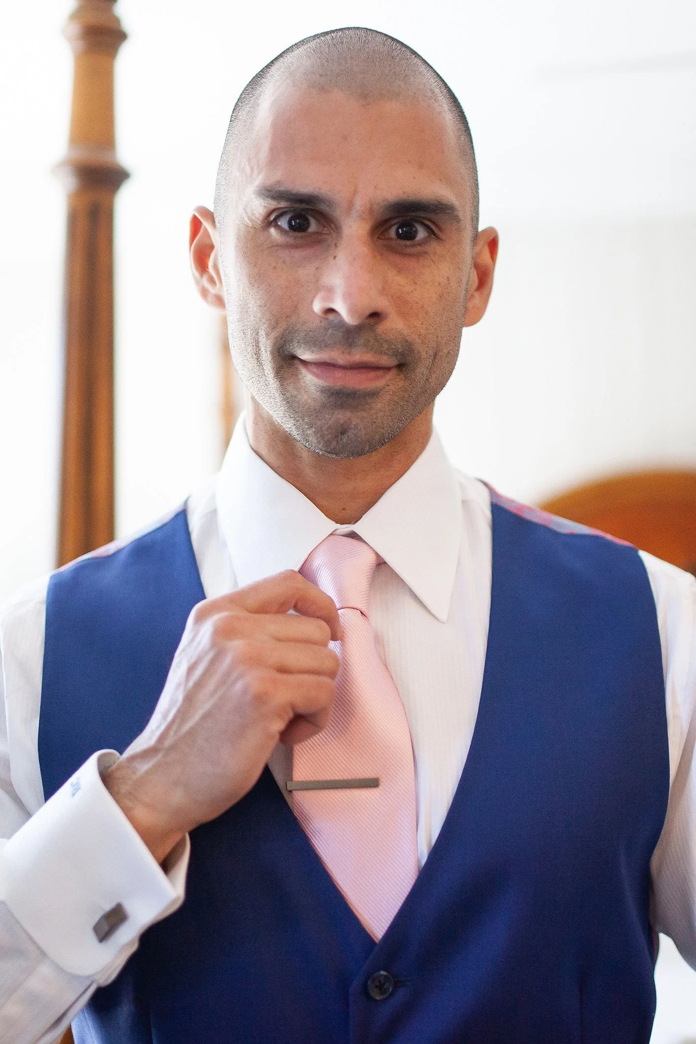 A pop of Royal in a sea of Navy Blue made this handsome groom stand out. A soft pink tie for his groomsmen and a baby blue tie for both fathers. The magic is in the details and Onore Clothiers are nothing if not masters of the finer points.