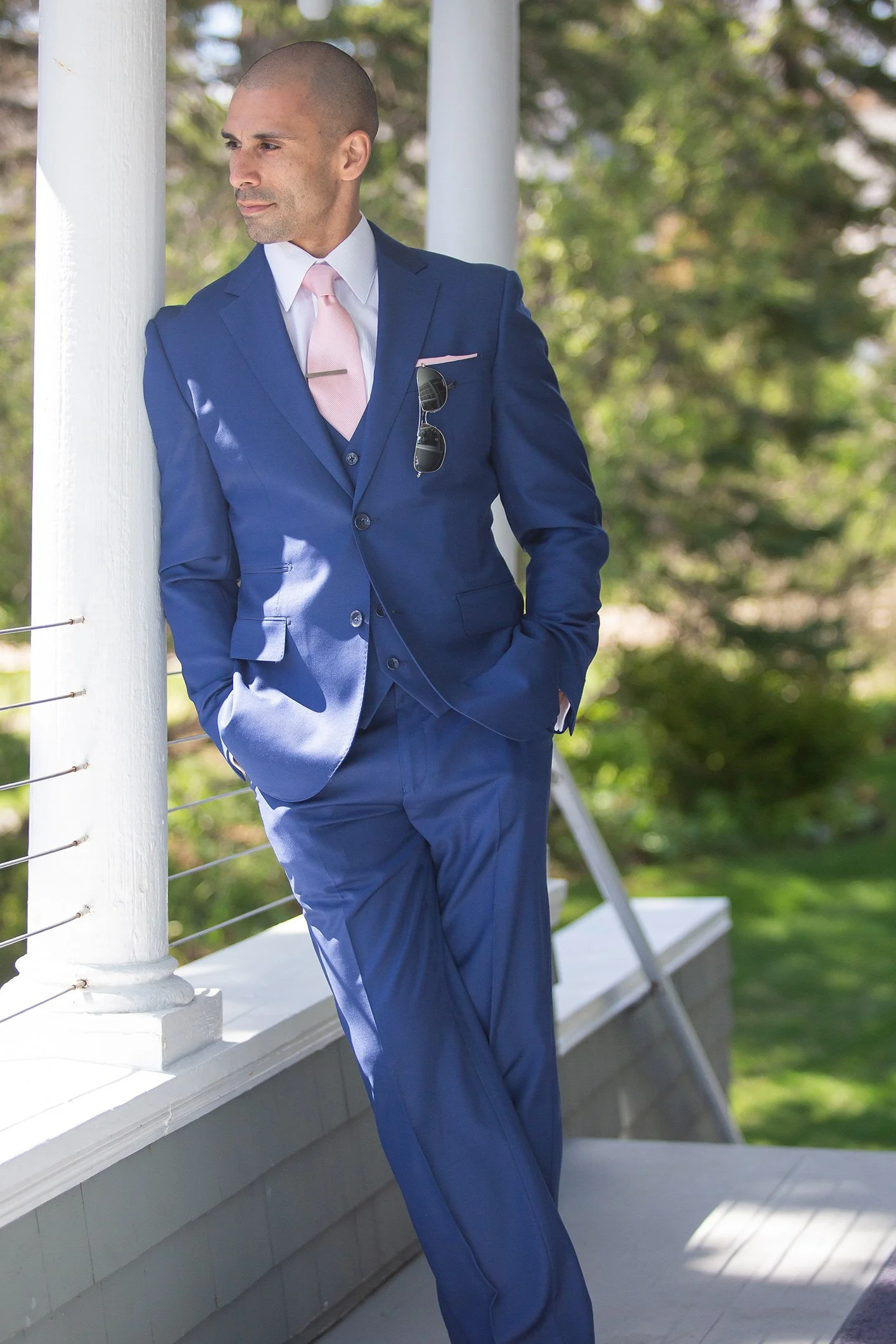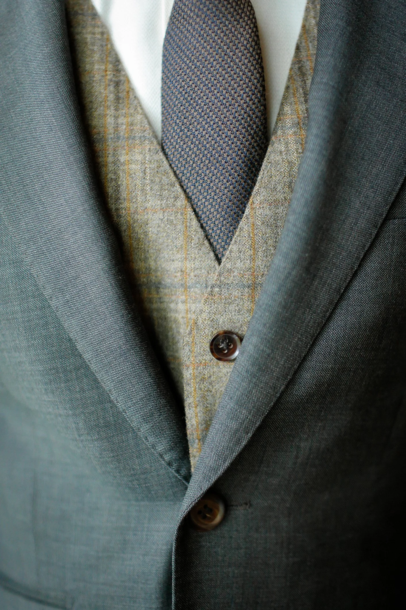 The benefit of a custom wedding suit or custom wedding tuxedo is that you get to design exactly what you want and it will fit you exactly as it should. Because it’s made for you and no one else. If you’re looking for an unexpected color or bold print, custom is the way to go. If you’re looking to mix and match colors, prints and patterns, custom is the way to go. And if you’re a larger human who struggles with an off-the-rack fit, then custom is the way to go. First time designing your own garment? Don’t worry, our clothiers can do this in their sleep. Read more about our custom clothing process here.